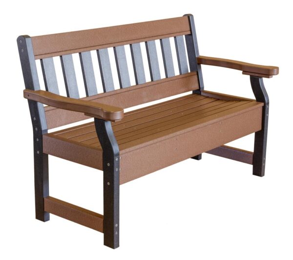 The Little Cottage Company Heritage Garden Bench is a classic addition to any garden or landscape. This comfortable, durable bench looks like classy painted or stained wood but doesn’t bring any of the headaches of wooden porch furniture. That’s because it’s made out of 100% recycled HDPE lumber which is impervious to water. Leave it out in rain, sleet, snow, or hail–it just doesn’t matter. The garden bench won’t rot, decay, or warp. It won’t splinter or crack. It won’t attract insects or grow mildew. You’ll never need to sand it, stain it, paint it, or seal it. It will just continue to serve you, year after year. Even the fixtures were created with outdoor living in mind. That’s because they are commercial grade stainless steel. All this means you can just focus on what’s important: enjoying your garden. This bench is big enough to seat two, which means you and your loved ones can enjoy lovely conversations under the warm summer sun. It’s easy to personalize your garden bench too, because you can choose between four frame colors and sixteen seat colors to create a bench that you’ll truly love. Is your garden missing a little something special? Order your Heritage Garden Bench today.